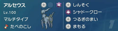 幻解禁環境なので、せっかくなのでアルセウス、そしてアルセウスの型の中でも分かりやすく強いつるぎのまい+しんそく型を使う所から構築スタート。
