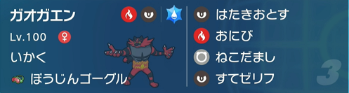 モロバレルが辛い構築なのでぼうじんゴーグルを持たせています。