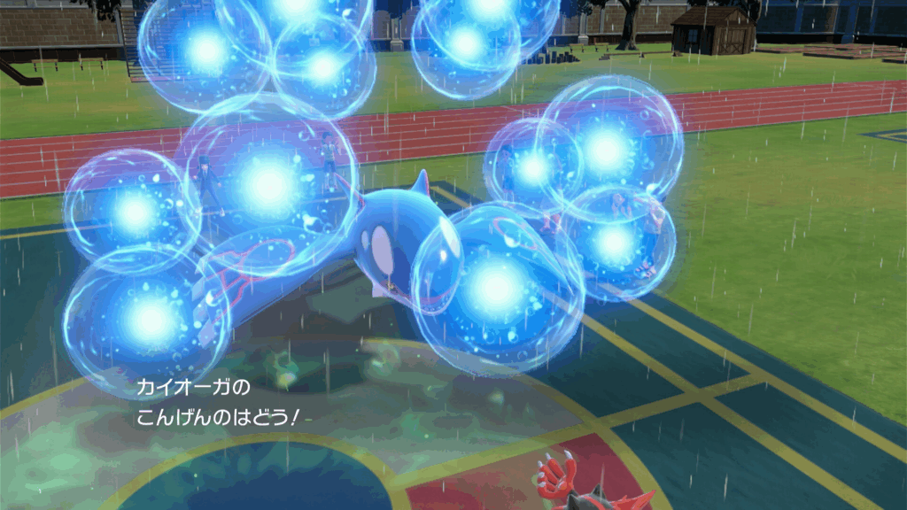 しおふきが無く、特攻に努力値をあまり回していない分(カイオーガにしては)火力は低いのですが、それでもアルセウスの道を切り開くには十分。