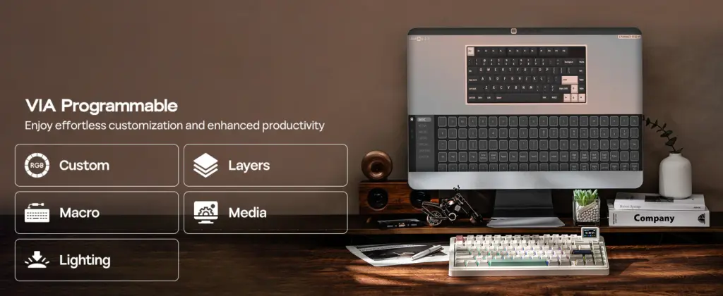カスタマイズ性の高さと、右上にちょこんとついたミニモニターが遊び心をくすぐるモデルです。仕事も遊びも、このキーボードとなら良い感じに両立できそうな予感。