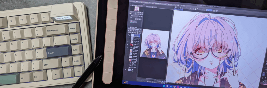 まとめると、キーボードとしては無難に快適性重視でまとまっているが、それを邪魔しない程度に多機能で、手軽な遊び心もあります。イラスト作業においても問題なく使用することが出来ますし、むしろ心地よい打鍵感とミニモニターによるキー入力の可視化、VIAによる細かいキー設定は快適性に一役も二役も買ってくれるでしょう。