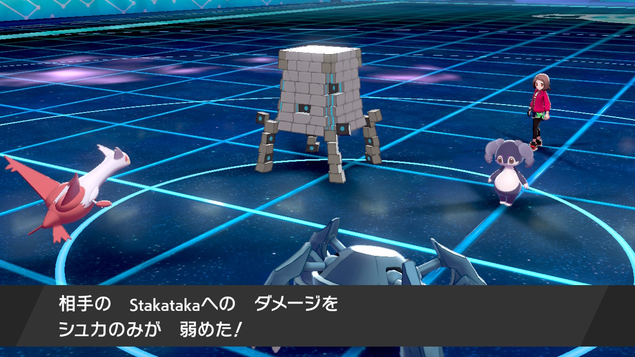 この動きの特筆すべき点はラティアスのじならしで相手のシュカのみ(地面半減実)が消費されるので、メタグロスのダイアースがきのみ消費済み状態で直撃することです。これによってシュカのみ持ちのガオガエンやエンテイなども一撃で撃破することができます。