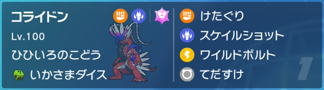 味方のコーチングを受けて相手コライドンを破壊し、ミライドンの前では囮にもなれる素晴らしいポケモン。