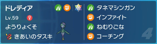 ドレディアの素の素早さがコライドンより早いので、葉緑素が無くてもコーチングをかけることができます。