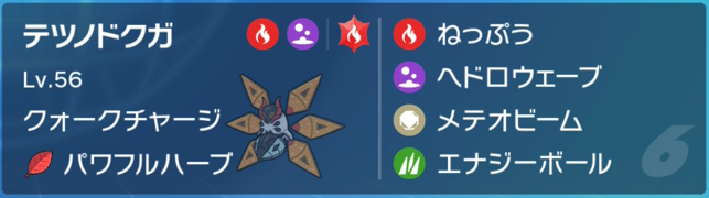 コライドンとの相性が非常に良く、かつテラスを切らなくても炎タイプをメテオビームでワンパン。